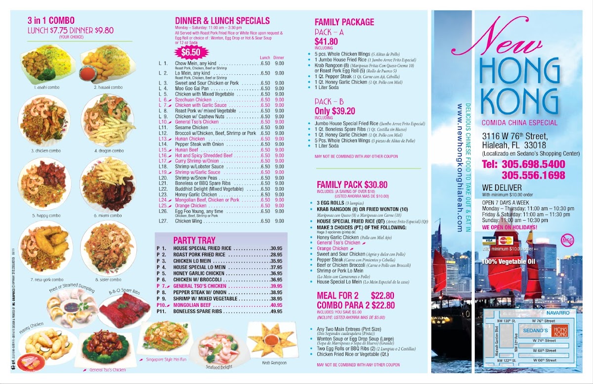 Welcome to New Hong Kong - Hialeah, a culinary gem located at 3116 W 76th St, Hialeah, FL. This restaurant delights with a diverse menu that captures the soul of authentic Chinese cuisine while catering to the local palate. The appetizer section boasts tantalizing options such as the crisp Roast Pork Egg Rolls and decadent Krab Rangoon, perfectly setting the stage for the flavors to come.